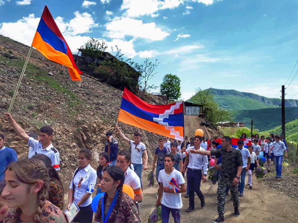Մայիսյան եռատոնը նշվեց աշխարհի բոլոր մասերում, որտեղ հայի շունչ կա: Մայիսի 9-ին Արցախի Ժողովրդավարական կուսակցության նախաձեռնությամբ այն նշվեց նաև Արցախի Հանրապետության Հադրութի շրջանի Տումի գյուղում: ԱԺԿ մի խումբ ակտիվիստներ տեղի բնակիչների հետ քայլերթ կազմակերպեցին դեպի զոհված ազատամարտիկների հուշահամալիր, այնուհետև հարգանքի տուրք մատուցեցին և ծաղիկներ դրեցին նրանց շիրիմներին: Տումիի Ս.Աբրահամյանի անվան միջնակարգ դպրոցի աշակերտները  Մշակույթի տան սաների հետ համատեղ համերգ կազմակերպեցին ` նվիրված Մայիսյան եռատոնին: Համերգի մասնակիցները ակտիվ մասնակցության համար պատվոգրերի և նվերների արժանացան: Միջոցառմանը ներկա էին ինչպես տեղի բնակիչներ, այնպես էլ` հյուրեր Ստեփանակերտից և արտասահմանից: